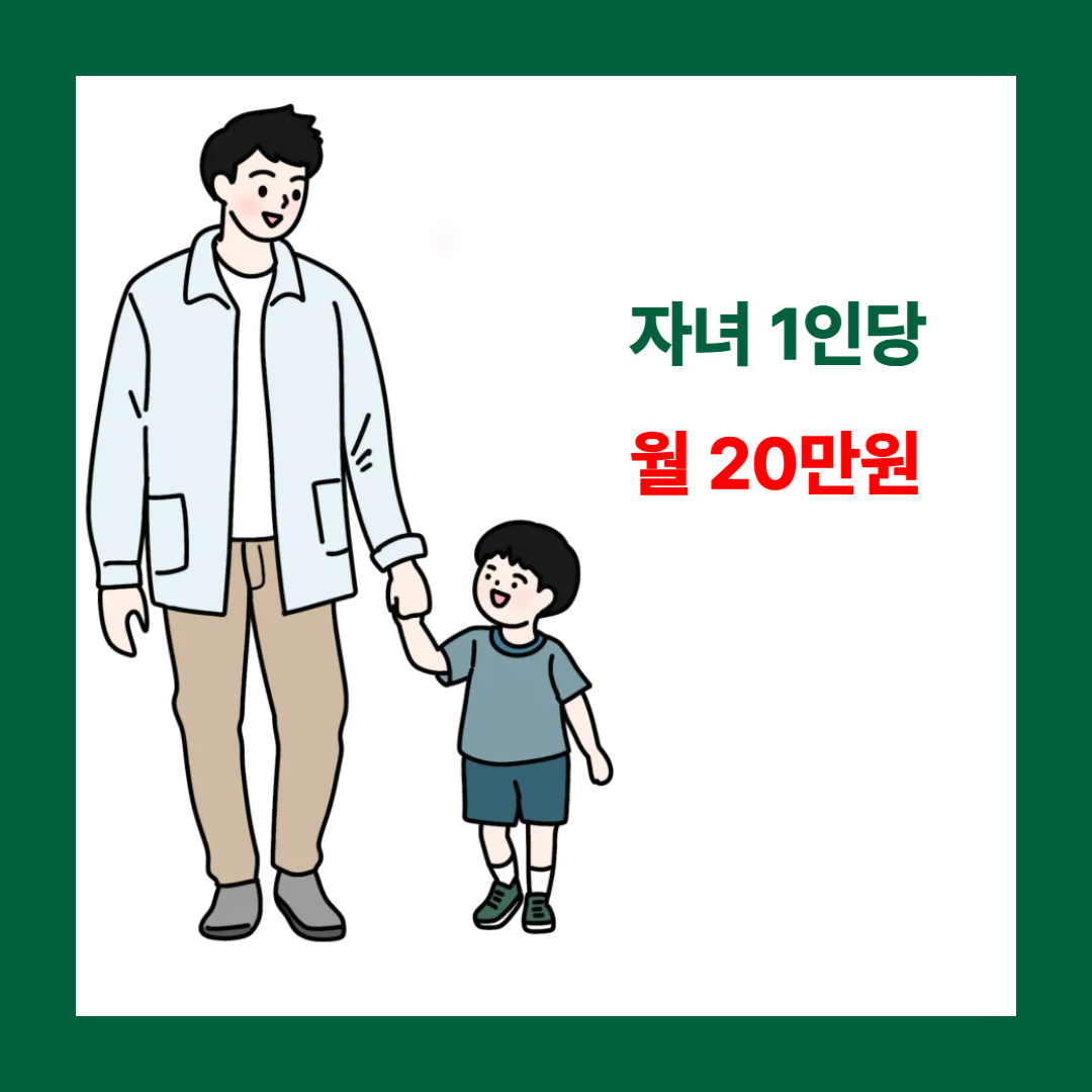 자녀 1인당 월 20만 원이 지급됩니다. 자녀 수에 따라 최대 월 60만 원까지 받을 수 있으며, 만 18세가 될 때까지 매달 지원됩니다.