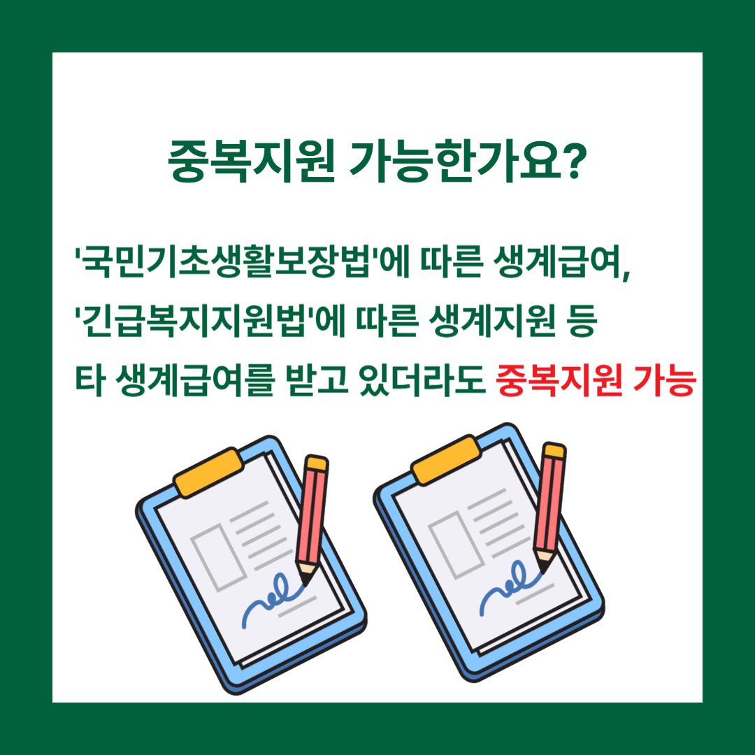질문 : 타 생계급여 수급여부와 상관없이 중복지원 가능한가요?
