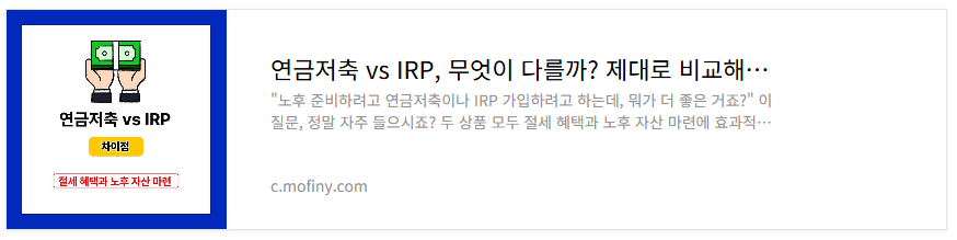| 연금저축 vs IRP, 무엇이 다를까? 제대로 비교해드립니다! (2) | 2025.07.14 |