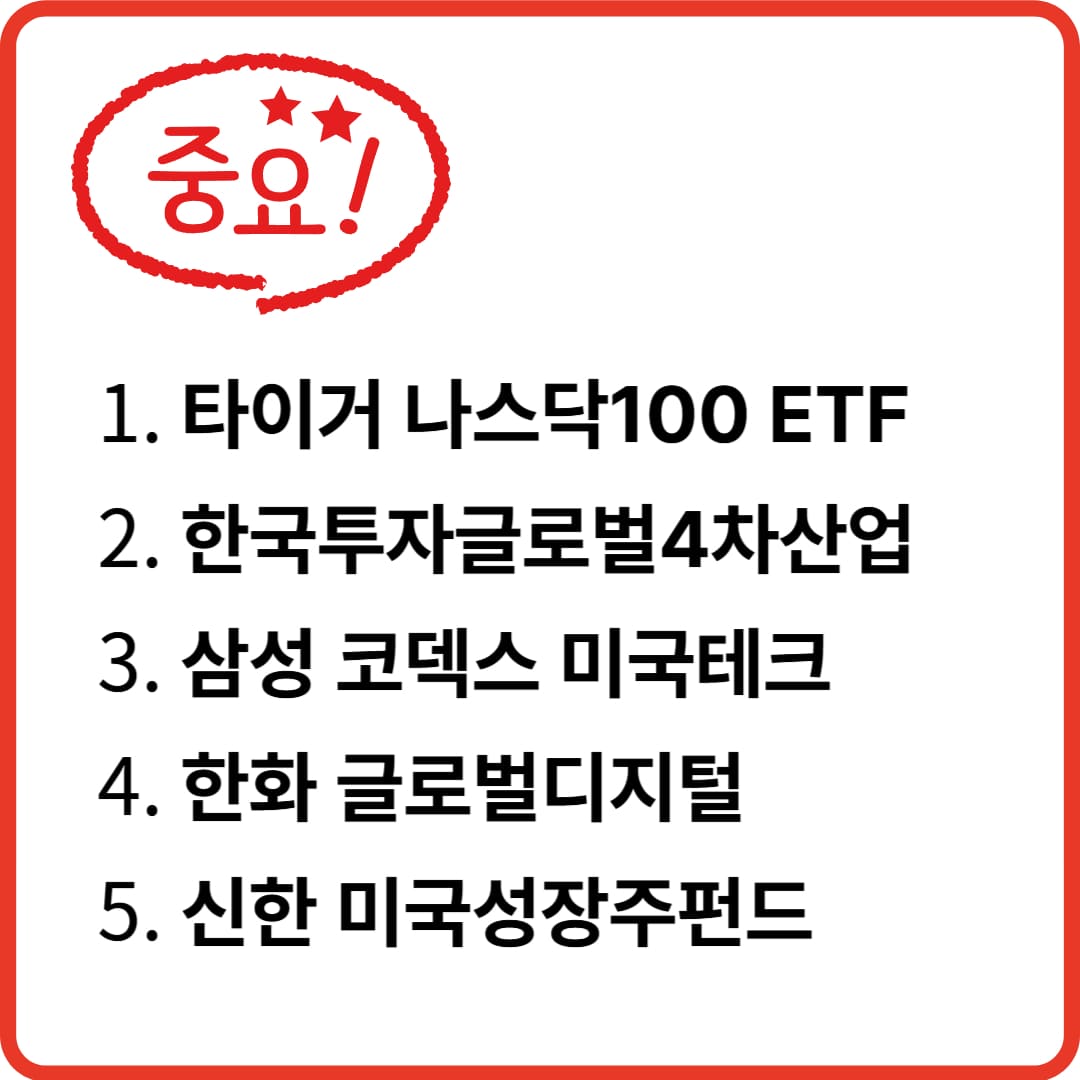 | 성장형 | 미국주식 ETF 70% + IT 펀드 30% | 높은 수익률 추구 / 하지만 리스크 존재 |