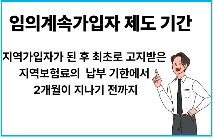 잠깐! 중요한 정보 놓치지 마세요! 임의계속가입자로 신청했더라도, 최초로 고지된 임의계속 보험료를 납부 기한부터 2개월이 지난날까지 납부하지 않으면 임의계속가입자 자격이 자동으로 상실되고 지역가입자로 전환되니, 절대 납부 기한을 놓치지 마세요! 어렵게 신청한 제도를 한순간에 잃을 수 있습니다.