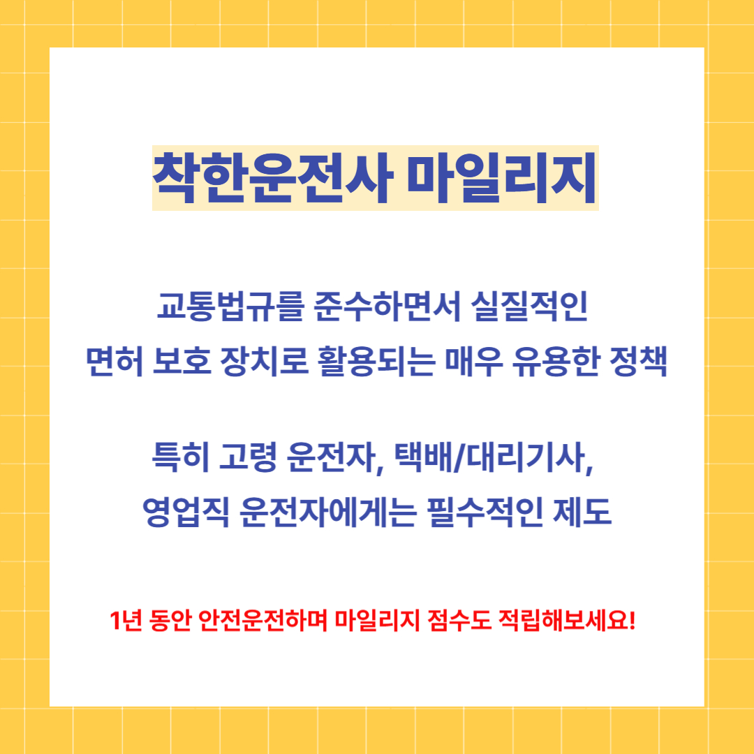특히 고령 운전자, 택배/대리기사, 영업직 운전자에게는 필수적인 제도라고 할 수 있습니다.