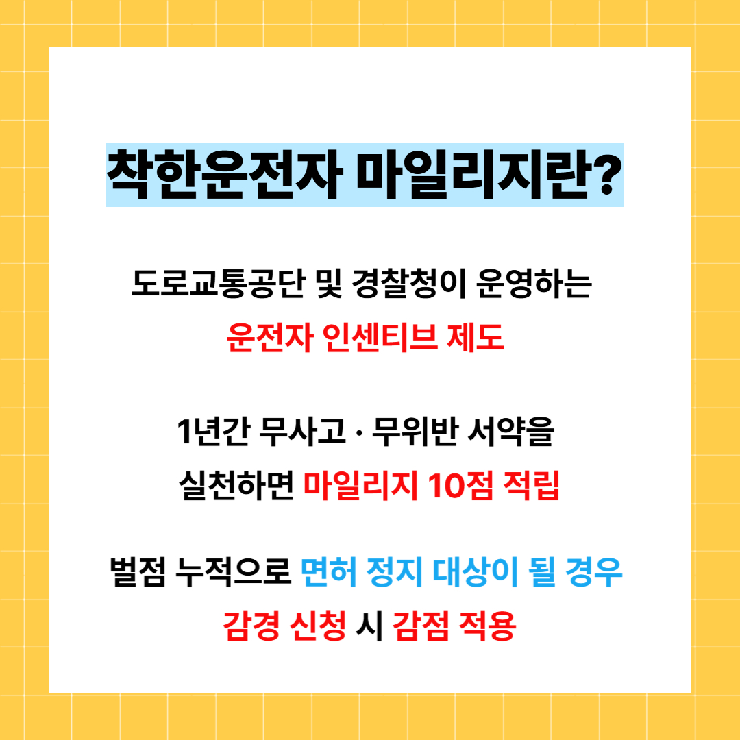 운전자가 사전에 준비할 수 있는 유일한 '벌점 대비 보험' 같은 제도가 바로 이 착한 운전자 마일리지입니다.