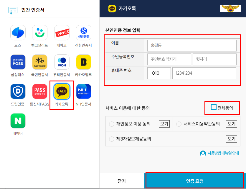 - 간편 인증 로그인 후 온라인 신청 가능