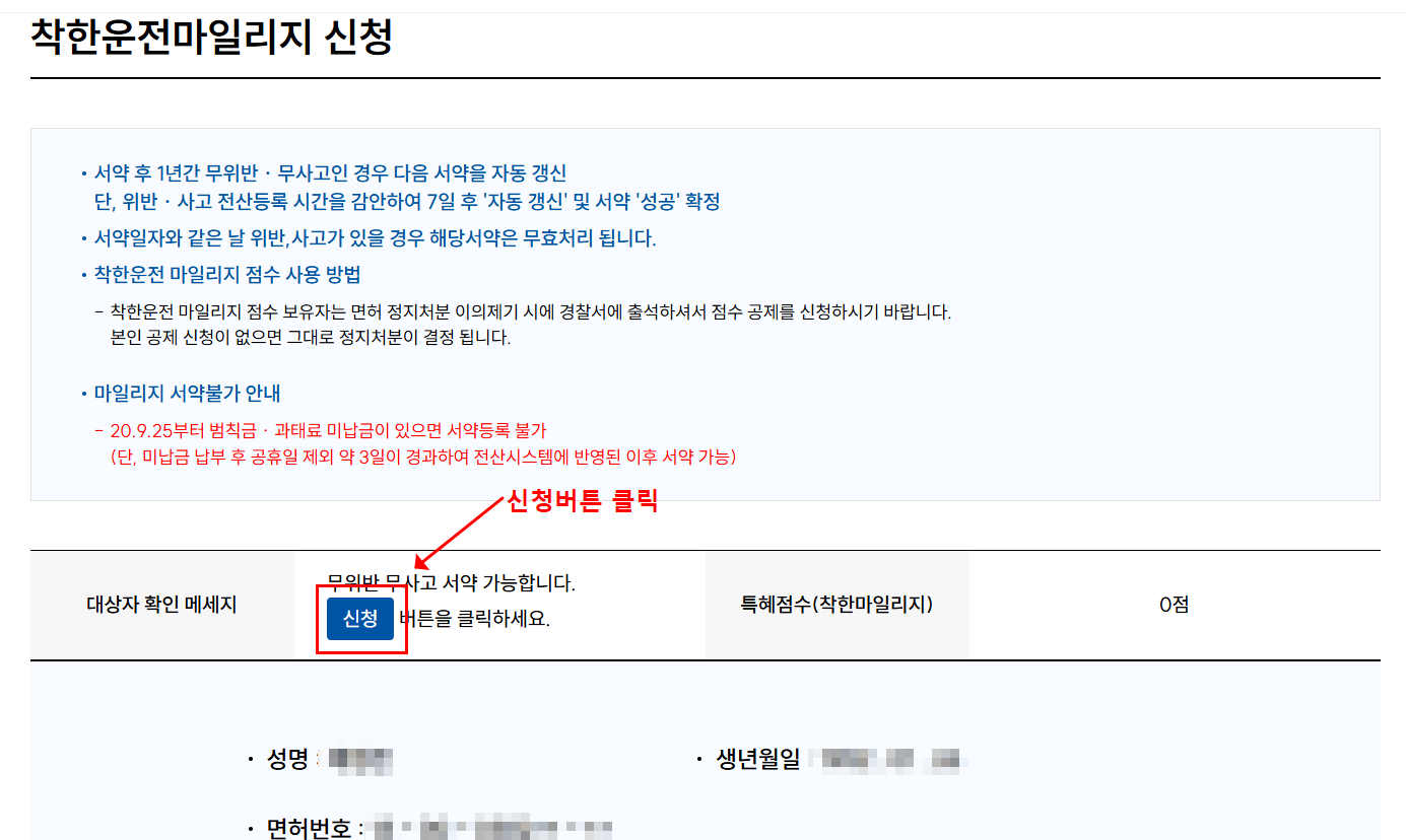 착한운전자 마일리지 신청 방법