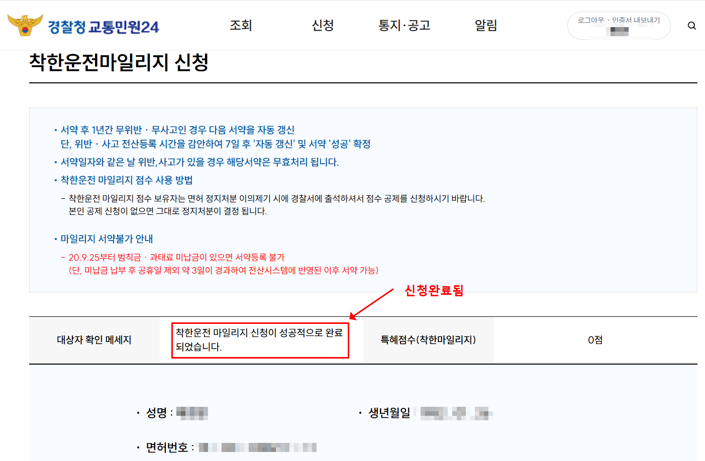 포인트: 마일리지는 자동 적용되지 않으므로, 반드시 면허 정지 통보 시 직접 감경 요청을 해야 효과를 볼 수 있습니다.