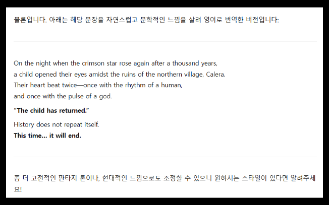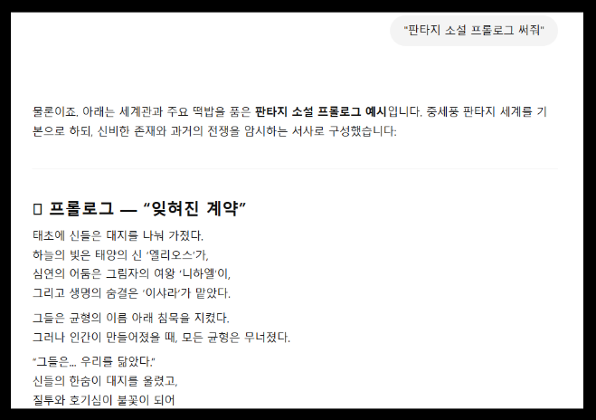 - ✍️ 창작 활동: "판타지 소설 프롤로그 써줘"