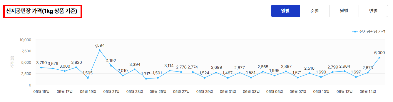 → 등급별, 도매·소매, 날짜별 시세를 한눈에 확인할 수 있습니다.
