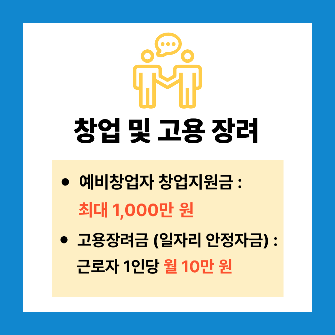 - 예비창업자 창업지원금: 최대 1천만 원